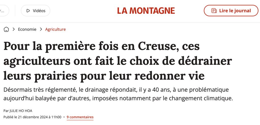 “Dédrainage : le mot n’existe pas dans le dictionnaire. C’est dire comme il vient bousculer les habitudes”. C’est ce qu’écrivait le journal La Montagne dans un reportage paru fin 2024 et dédié à un projet de dédrainage de parcelles agricoles encore “jamais vu” en Creuse et “sans doute” dans tout le Limousin.
